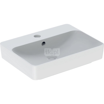 Umywalka GEBERIT Variform prostokątna, biała / KeraTect, 600mm, otwór na baterię na środku, stawiana na blat, z odpływem przelewowym, półka od ściany