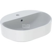 Umywalka GEBERIT Variform eliptyczna, biała, 500mm, otwór na baterię na środku, stawiana na blat, bez odpływu przelewowego, półka od ściany
