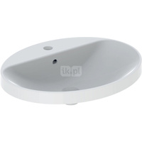 Umywalka GEBERIT Variform eliptyczna, biała, 550mm, bez otworu na baterię, wpuszczana w blat, z odpływem przelewowym, bez półki