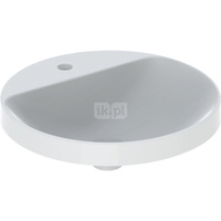 Umywalka GEBERIT Variform okrągła, biała, 480mm, otwór na baterię na środku, wpuszczana w blat, z odpływem przelewowym, półka od ściany
