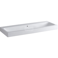 Umywalka GEBERIT iCon prostokątna, biała / KeraTect, 1200mm, bez otworu na baterię, z odpływem przelewowym, półka od ściany