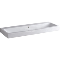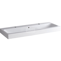 Umywalka GEBERIT iCon 2-stanowiskowa prostokątna, biała, 1200mm, bez otworu na baterię, z odpływem przelewowym, półka od ściany