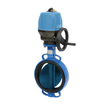 Przepustnica bezkołnierzowa SYLAX z napędem elektr. on/off SOCLA seria V 24V AC/DC, IP68, dysk: AISI316, wykładzina: EPDM, korpus: GG25 epoksyd., Pnom 1,6 MPa, tmax=120 st.C DN 150