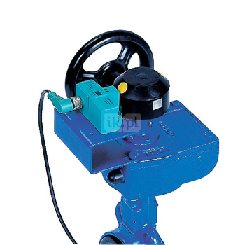 Ręczna przekładnia ślimakowa, smarowana fabrycznie - dożywotnio, napędzana kółkiem ręcznym wyposażona w dwa wyłączniki krańcowe indukcyjne DN 25-100
