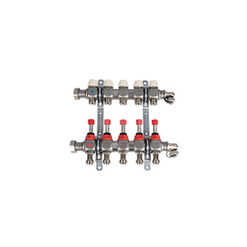 Rozdzielacz do ogrzewania podłogowego GIACOMINI R553FPDB 5-obieg. technopolimer 1'' x eurocono 3/4'' + przepływomierz + termometr + zawór napełn/spust + odpowietrznik + zawór przy przyłączu