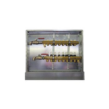 Rozdzielacz do ogrzewania podłogowego HERZ 9-obieg. mosiądz GW 1'' x GZ 3/4'' + przepływomierz + zawór napełn/spust + odpowietrznik + zawór przy przyłączu