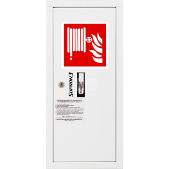 Hydrant DN 52 wnękowy boczny z koszem, z miejscem na gaśnicę, wąż 20 m, zamek patent, RAL 9003 prawy