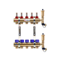 Rozdzielacz do ogrzewania podłogowego QIK STANDARD II TN 5-obieg. mosiądz GW 1'' x GZ 3/4'' + przepływomierz