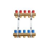 Rozdzielacz mosiężny do CO z nyplami i korkami - QIK Optimo III RMSRR-2 - 5 sekcji