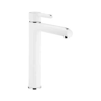 Bateria umywalkowa stojąca nablatowa KFA Armatura ANGELIT click clack, chrom, biały, montaż blat / otwór na baterię