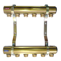 Rozdzielacz do ogrzewania podłogowego QIK STANDARD II 6-obieg. mosiądz GW 1'' x GZ 3/4'' + przepływomierz
