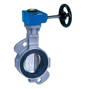 Przepustnica bezkołnierzowa SYLAX z przekładnią ślimakową, dysk: AISI316, wykładzina: FKM, korpus: GGG40 epoksyd., Pnom 1,0 MPa, tmax=180 st.C DN350