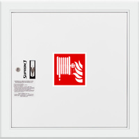 Hydrant DN 33 zawieszany boczny z miejscem na gaśnicę, wąż 20 m, ocynk fasada, zamek patent, RAL 9003 lewy