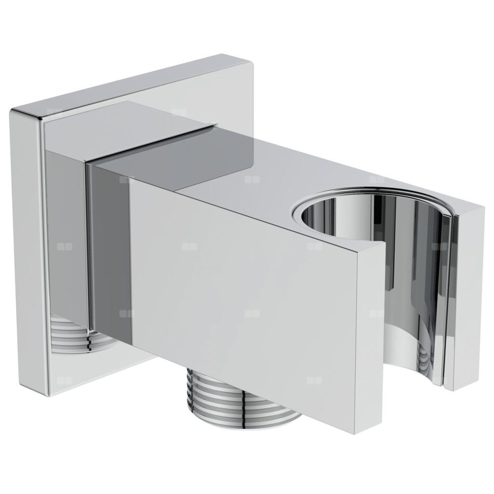 Zawieszenie słuchawki z przyłączem kątowym. Metalowa rozeta. Kształt prostokątny. Wykonane z metalu. Podłączenia G 1/2.