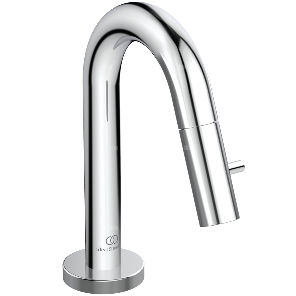 Pillar tap for cold or premixed water. Tubular spout R152. Volume control on the front end of the tubular spout. Hidden aerator Cache M21.5x1. G½“ Ceramic disc headpart opened and closed with a rotary handle. G½” shank fixation. Flow rate at 3 bar 6 l/min. Comply with EN817.