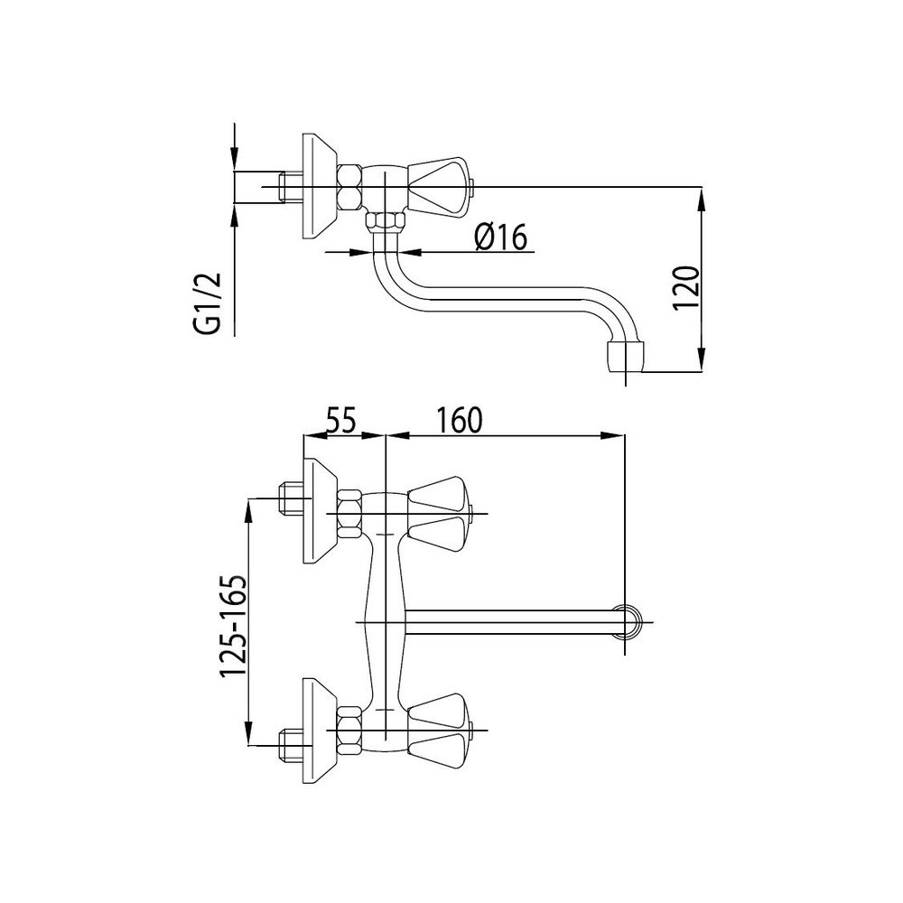 Bateria standard kuchenna ścienna z wylewką s16, l=160 mm, chro