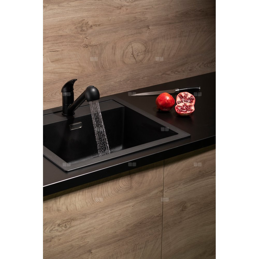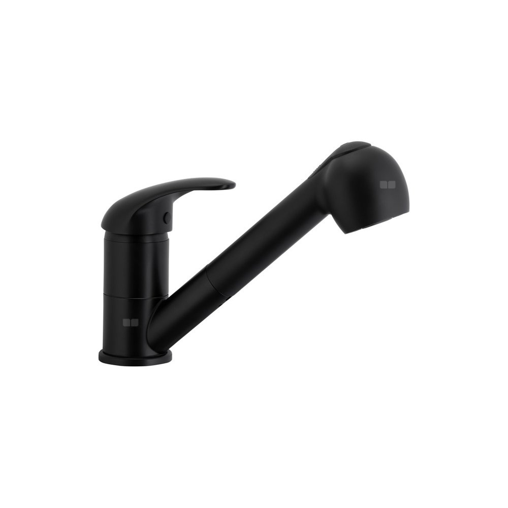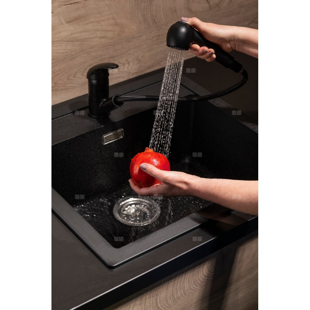 Bateria zlewozmywakowa stojąca KFA Armatura INDIRA, obrot. wylewka, kolor czarny, z wyciąganym natryskiem, mosiądz