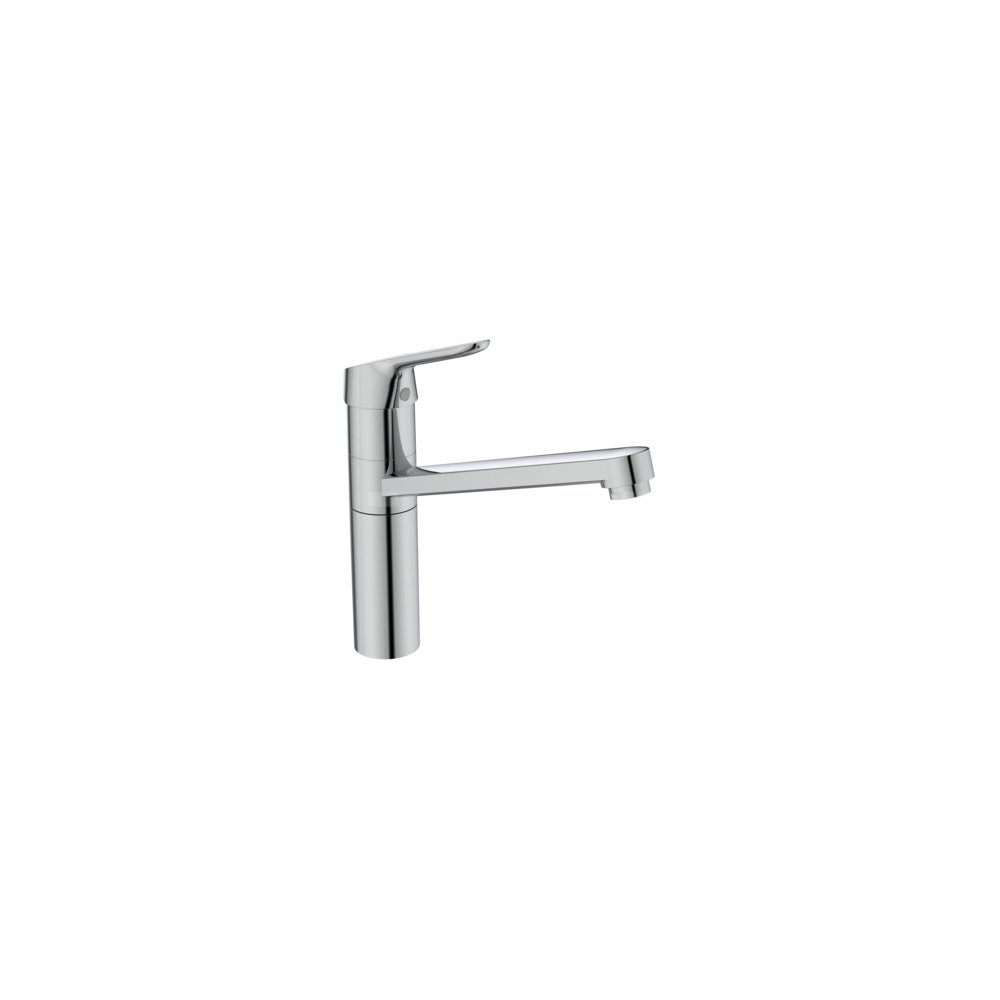 Ruchoma, wysoka wylewka. Metalowy uchwyt z nadrukowanymi czerwonymi i niebieskimi oznaczeniami. Głowica 38 mm CLICK z funkcją ECO i ograniczenikiem temperatury wody. Aerator typu Perlator M24x1. Wężyki przyłączeniowe G3/8”.