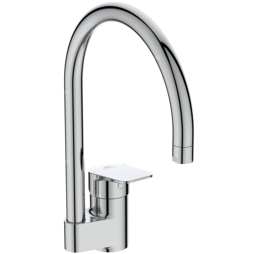Jednootworowa, odlewany korpus Ø47 mm, z obszarem Comfort R200 mm. Innowacyjna ceramiczna głowica FirmaFlow®, 28 mm, z funkcją. ograniczenia temperatury wody. Technologia Click. Metalowy uchwyt z oznaczeniem wody: ciepła/zimna. Aerator silikonowy zapobiegający osadzaniu się kamienia. (samoczyszczący). System montażu Easy-Fix. Wężyki przyłączeniowe G3/8”.