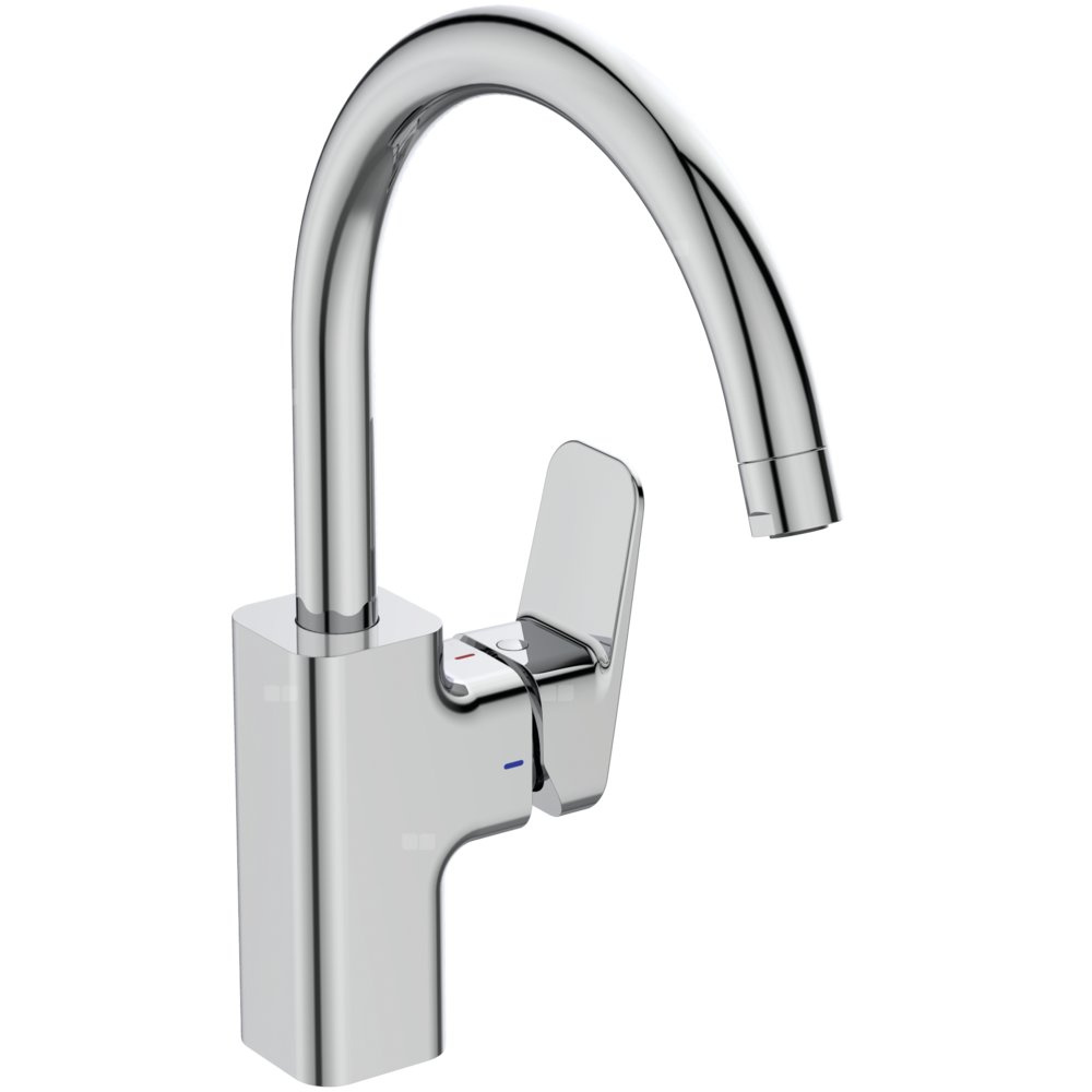 Jednootworowa, odlewany kwadratowy korpus Ø47 mm, z obszarem Comfort 210 mm. Innowacyjna ceramiczna głowica FirmaFlow®, 28 mm, z funkcją. ograniczenia temperatury wody. Technologia Click. Technologia Blue Start®. Metalowy uchwyt z oznaczeniem wody: ciepła/zimna. Aerator silikonowy zapobiegający osadzaniu się kamienia. (samoczyszczący). System montażu Easy-Fix. Wężyki przyłączeniowe G3/8”. PN-EN 817, ACS, NF, KIWA.