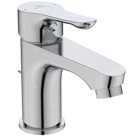 Głowica ceramiczna, 35 mm, z ogranicznikiem temperatury. Technologia Click. Metalowy uchwyt z nadrukowanymi czerwonymi i niebieskimi oznaczeniami. Aerator (perlator). Plastikowy korek automatyczny. System montażu Easy-Fix. Wężyki przyłączeniowe G3/8”. Zgodność z normą 817.