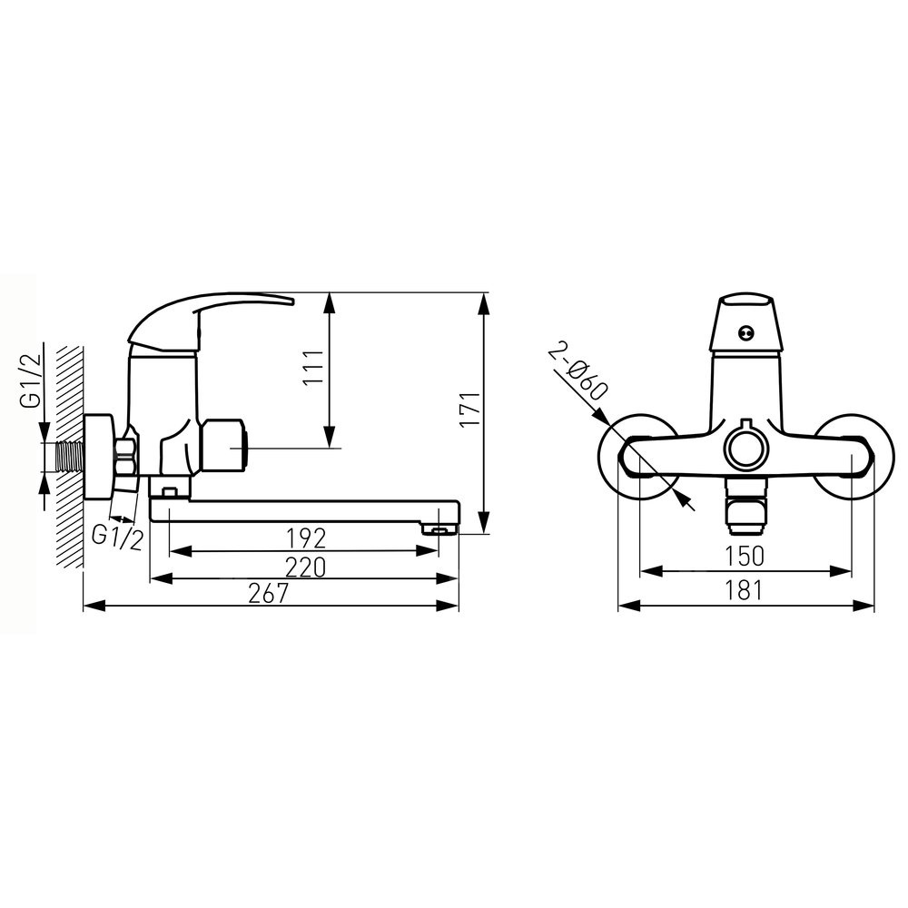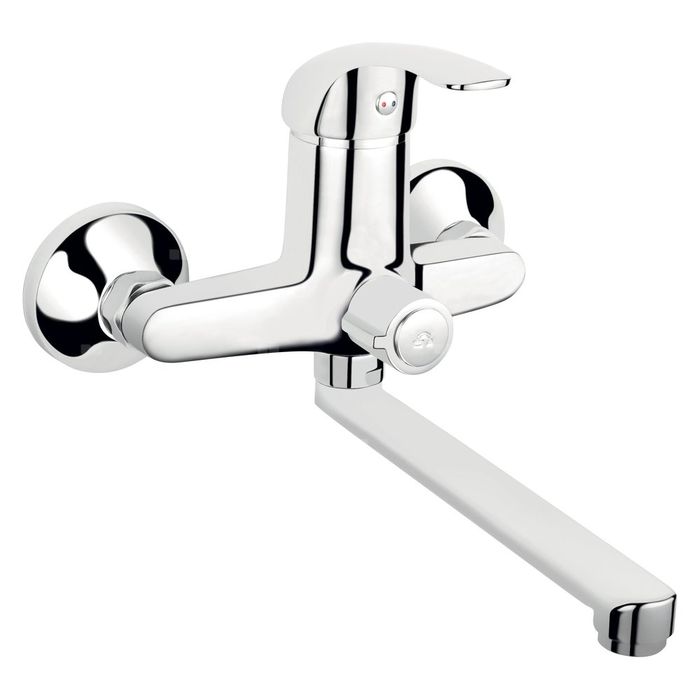 Bateria umywalkowa ścienna z funkcjonalną, ruchomą wylewką. Uniwersalne przyłącze 1/2" umożliwia zastosowanie dowolnego zestawu natryskowego. Ceramiczny, ergonomiczny przełącznik wylewka/natrysk zapewnia łatwość w obsłudze.