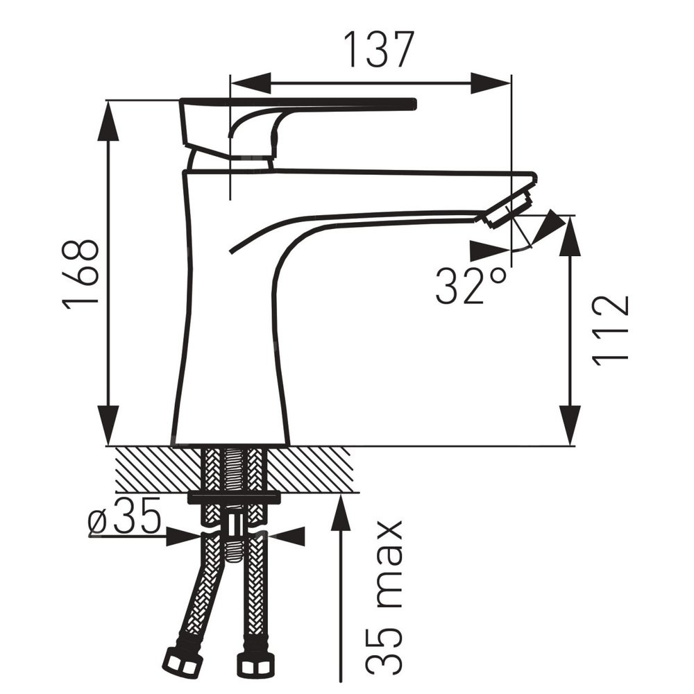 Bateria umywalkowa o delikatnym kształcie z prostokątnym uchwytem w nietypowym dwu-kolorowym wykończeniu chromu z czernią. Idealnie pasuje do nowoczesnych wnętrz.