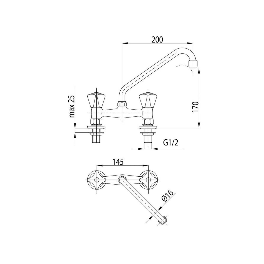 Bateria standard kuchenna stojąca z wylewką u16, 200 mm, chrom