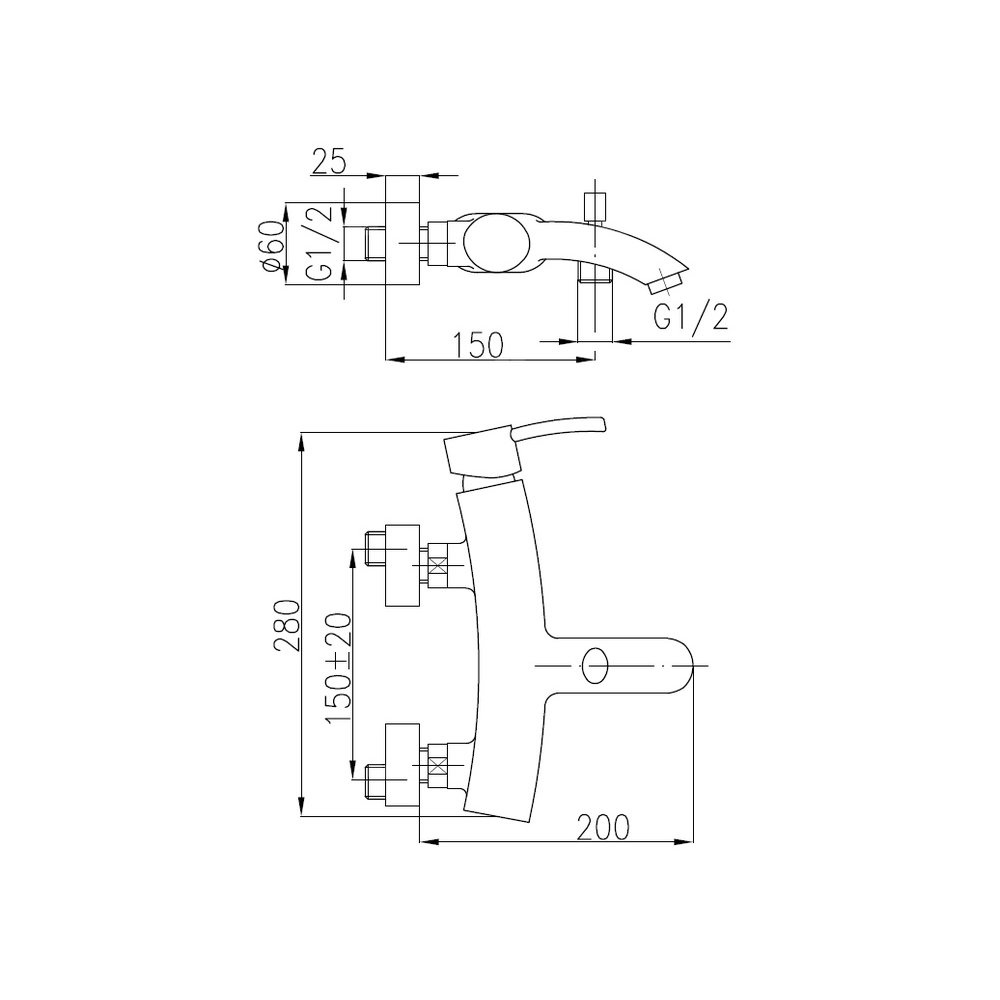 Bateria diament wannowa ścienna chrom