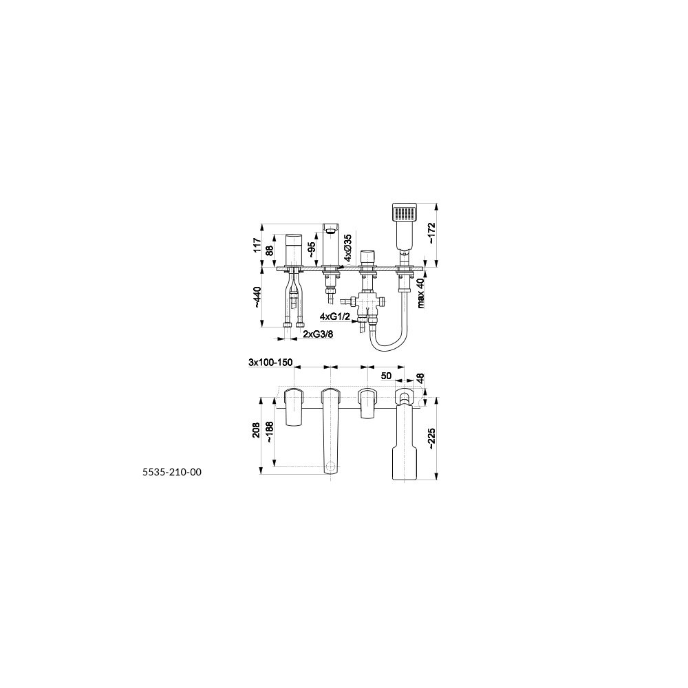 Bateria mokait wannowa stojąca 4-Otworowa chrom