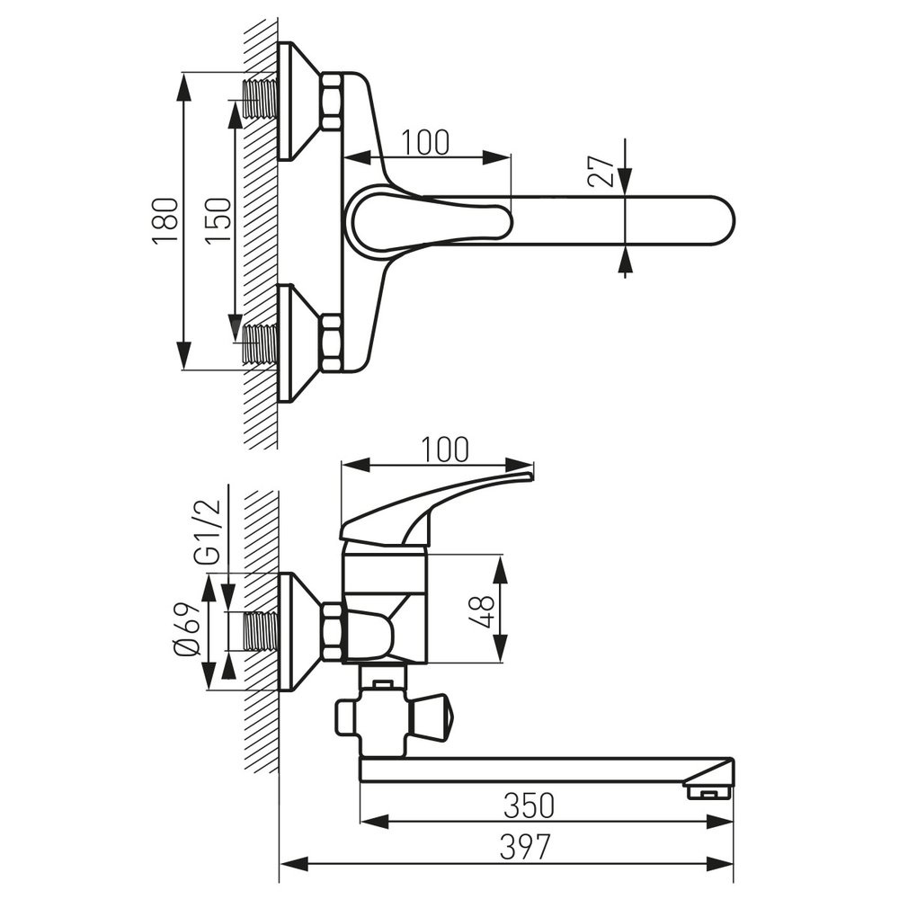 Bateria umywalkowo-wannowa z funkcjonalną, ruchomą wylewką. Uniwersalne przyłącze 1/2" umożliwia zastosowanie dowolnego zestawu natryskowego. Automatyczny przełącznik wylewka/natrysk zapewnia łatwość w obsłudze.