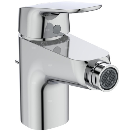 Bateria umywalkowa z metalowym korkiem automatycznym. Głowica ceramiczna 40 mm z ogranicznikiem temperatury. Odlewany korpus z mosiądzu. Metalowy uchwyt oraz rozeta z nadrukowanymi czerwonymi i niebieskimi oznaczeniami. Aerator typu Ball Joint. Wężyki przyłączeniowe G3/8”. System montażu EASY-FIX. Zgodność z EN817.