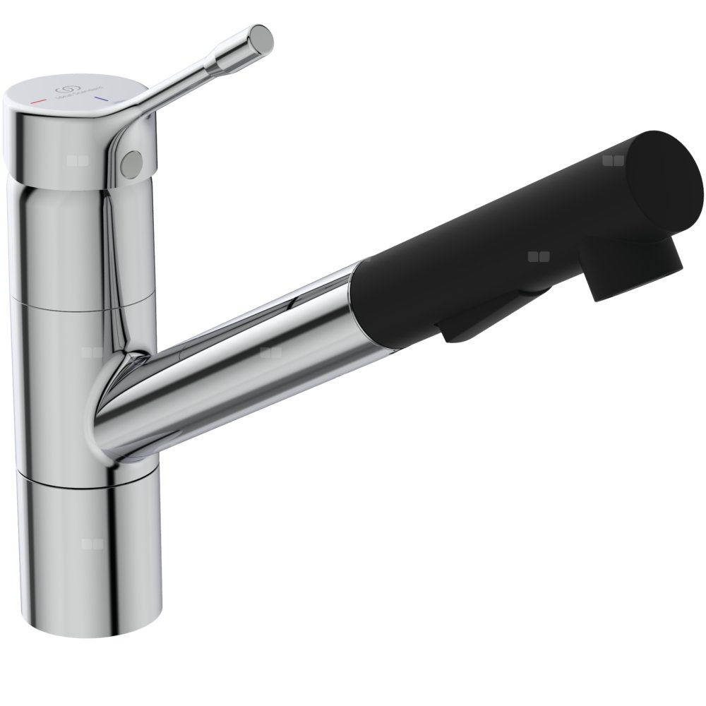 Wysoka ruchoma i wyciągana wielofunkcyjna wylewka typu L. Metalowy uchwyt z nadrukowanymi czerwonymi i niebieskimi oznaczeniami. Technologia Cold Start - przepływ wody zimnej wody. Ukryty aerator. Innowacyjna ceramiczna głowica FirmaFlow 38 mm z ogranicznikiem temperatury. Technologia Click. Wężyki przyłączeniowe G3/8”. System montażu Easy-Fix. W kompaktowym pudełku. Zgodność z normą EN817.