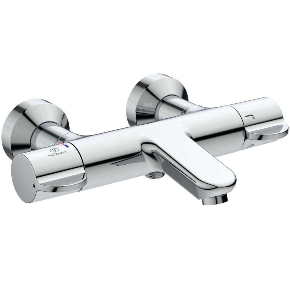 Bateria termostatyczna Ceraplus 2 wannowo-natryskowa ścienna. Funkcja Cool Body, zapobiegająca ryzyku poparzenia przez nagrzany korpus baterii oraz funkcja dezynfekcji termicznej. Przełącznik manualny wanna/natrysk. Głowica termostatyczna IS. Wandaloodporny perlator ograniczający napowietrzenie strumienia wody. Uchwyt z funkcją ograniczenia temperatury wody do 40 st. C. Bateria z zaworami zwrotnymi, przyłącza z funkcją odcięcia dopływu wody oraz ukryte przyłącza mimośrodowe baterii.