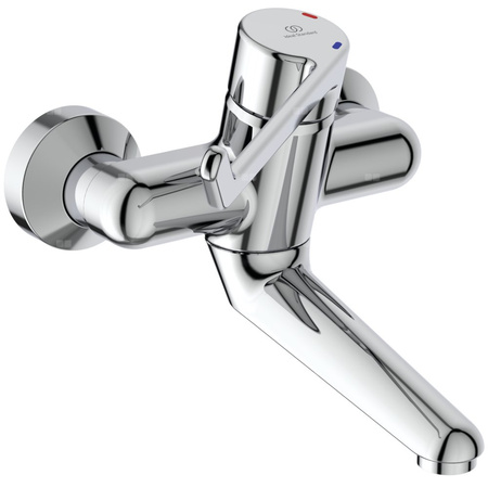 Długość wylewki 150 mm, długość uchwytu 180 mm. Ukryte wyciszone przyłącza mimośrodowe bez funkcji odcięcia przepływu wody. Metalowy uchwyt z nadrukowanymi czerwonymi i niebieskimi oznaczeniami. Aerator PCA Laminarny M24x1 wandaloodporny. Głowica ceramiczna typu Cycle Valve z ogranicznikiem temperatury wody. Uszczelnione rozety, ze standardowymi złączami S i reduktorem hałasu.