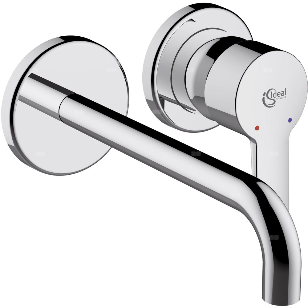 Zestaw montażowy baterii umywalkowej podtynkowej Connect Blue. Głowica ceramiczna 47 mm IS. Metalowy uchwyt z nadrukowanymi czerwonymi i niebieskimi oznaczeniami. Wylewka rurowa o długości 195 mm. Perlator typu Cascade. Do skompletowania z zestawem A5948NU (część wewnętrzna).