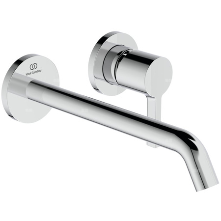 Zestaw montażowy podtynkowej baterii umywalkowej. Głowica ceramiczna 28 mm z ogranicznikiem temperatury wody. Bez funkcji Click. Wylewka rurowa o długości 225 mm. Okrągła, metalowa rozeta z logo Ideal Standard. Metalowy uchwyt z logo Ideal Standard bez oznaczeń. Aerator typu Caché M16,5x1 z ogranicznikiem przepływu wody do 5 l/min. Do skompletowania z elementem montażowym A1313NU.