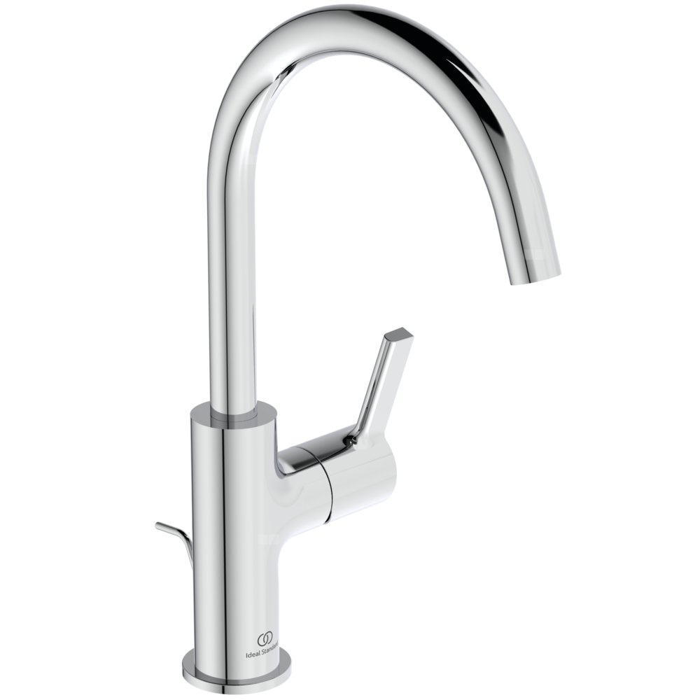 Głowica ceramiczna 28 mm z ogranicznikiem temperatury wody. Logo Ideal Standard umieszczone na korpusie baterii. Metalowy uchwyt bez oznaczenia wody ciepłej i zimnej. Aerator typu Caché M16,5x1 z ogranicznikiem przepływu wody do 5 l/min. System montażu EASY-FIX. Wężyki przyłączeniowe G3/8". Metalowy korek automatyczny.