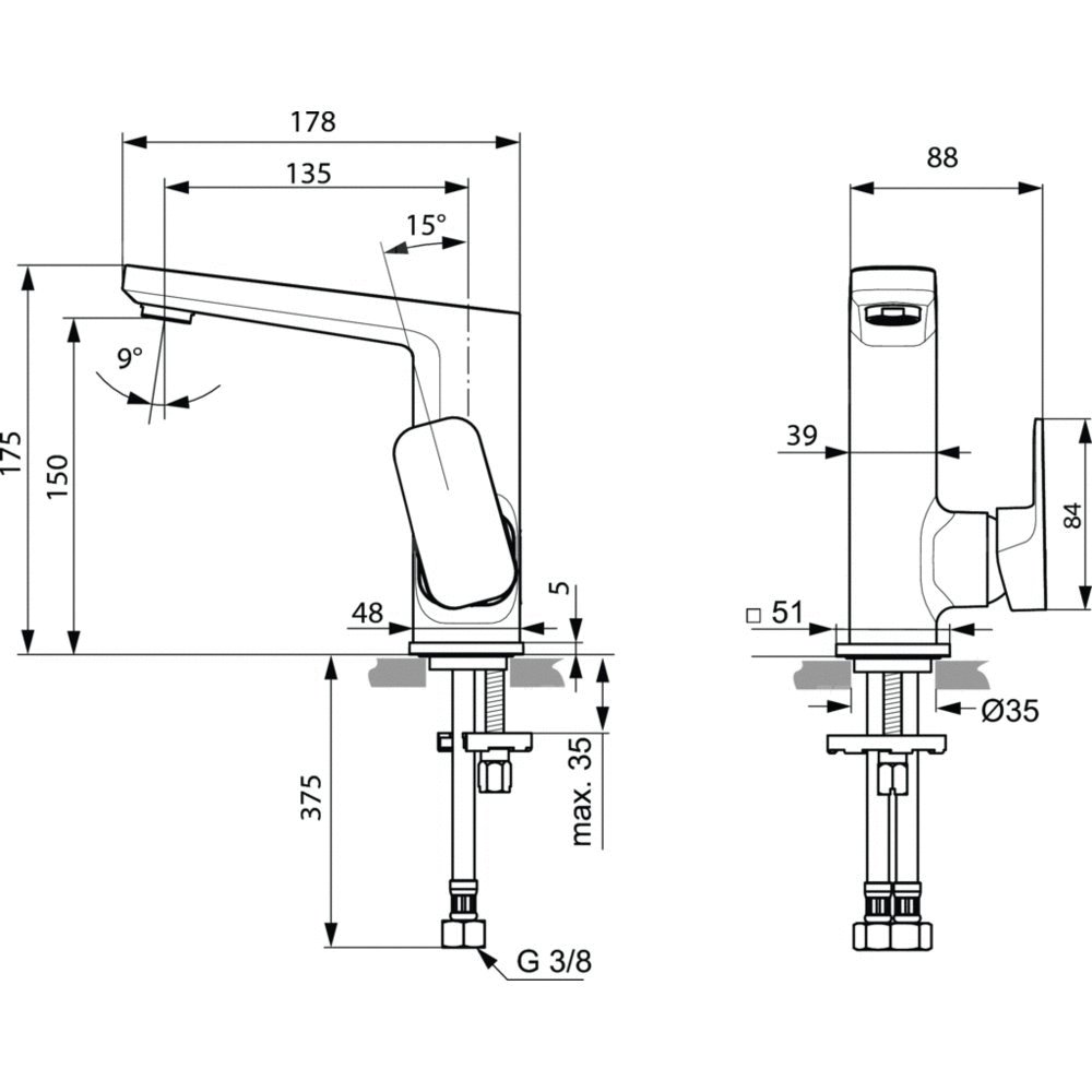 - Min. głębokość: 178 mm