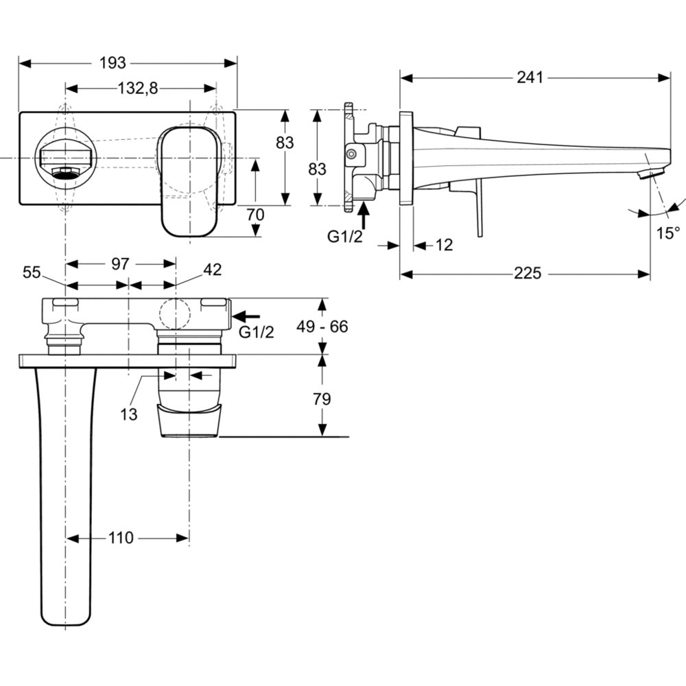 Zestaw montażowy baterii umywalkowej podtynkowej z wylewką 225 mm. Głowica ceramiczna 47 mm z ogranicznikiem temperatury. Metalowy uchwyt z nadrukowanymi czerwonymi i niebieskimi oznaczeniami, metalowa rozeta. Perlator z ogranicznikiem przepływu wody do 5 l/min i regulacją kierunku strumienia typu M24. Do skompletowania z elementem montażowym A5948NU.