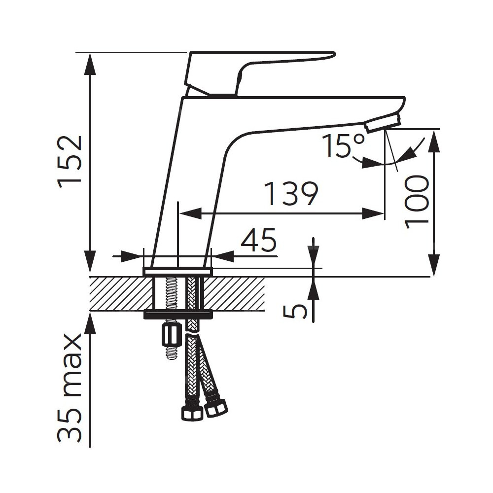 Oszczędnościowa bateria umywalkowa w nowoczesnym, prostokątnym dizajnie. Aerator z ogranicznikiem przepływu i funkcją napowietrzania redukuje zużycie wody przy jednoczesnym zachowaniu komfortu użytkowania. System Easy Clean ułatwi usuwanie osadu wapiennego z sitka aeratora.