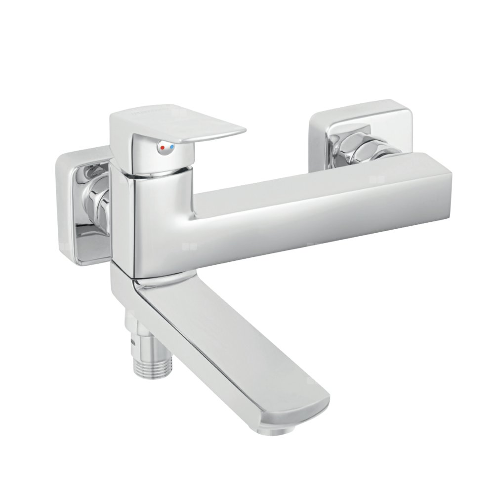 Bateria wannowa w nowoczesnym, prostokątnym dizajnie, wyposażona jest w ruchomą wylewkę, która pełni jednocześnie funkcje przełącznika. Dzięki takiemu rozwiązaniu zyskujemy oszczędność miejsca co umożliwia nam zastosowanie tego produktu również w małych kabinach natryskowych.