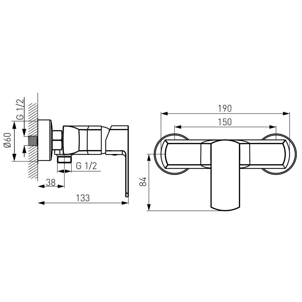 Bateria natryskowa w subtelnym prostokątnym dizajnie. Świetnie wpisuje się do nowoczesnych aranżacji. Bateria wyposażona jest w zawór zwrotny z ogranicznikiem przepływu, który redukuje zużycie wody oraz zabezpiecza przed cofnięciem się brudnej wody do instalacji. Uniwersalne przyłącze 1/2" pozwala na wybranie dowolnego zestawu natryskowego.
