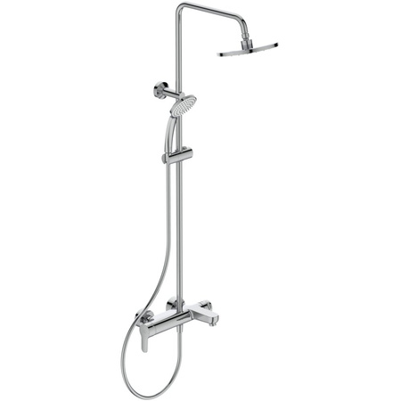 System natryskowy z baterią jednouchwytową i ze zintegrowanym przełącznikiem. Korpus baterii: wanna/prysznic. Innowacyjna głowica ceramiczna FirmaFlow 38 mm z ogranicznikiem temperatury. Mocowanie z nakrętkami maskującymi. Ukryte wyciszone przyłącza mimośrodowe. Metalowy uchwyt z nadrukowanymi czerwonymi i niebieskimi oznaczeniami. Zawór zwrotny. Zintegrowany przełącznik słuchawka/deszczownica/wanna, 40 mm,. obrót: 360°. Deszczownica z tworzywa, Ø 200 mm, z ogranicznikiem przepływu wody do 9,6 l/min. Jednofunkcyjna słuchawka prysznicowa, Ø 100 mm z ogranicznikiem przepływu wody do 8 l/min. Wąż prysznicowy, 1750 mm. Wysokość całkowita: 1126 mm.