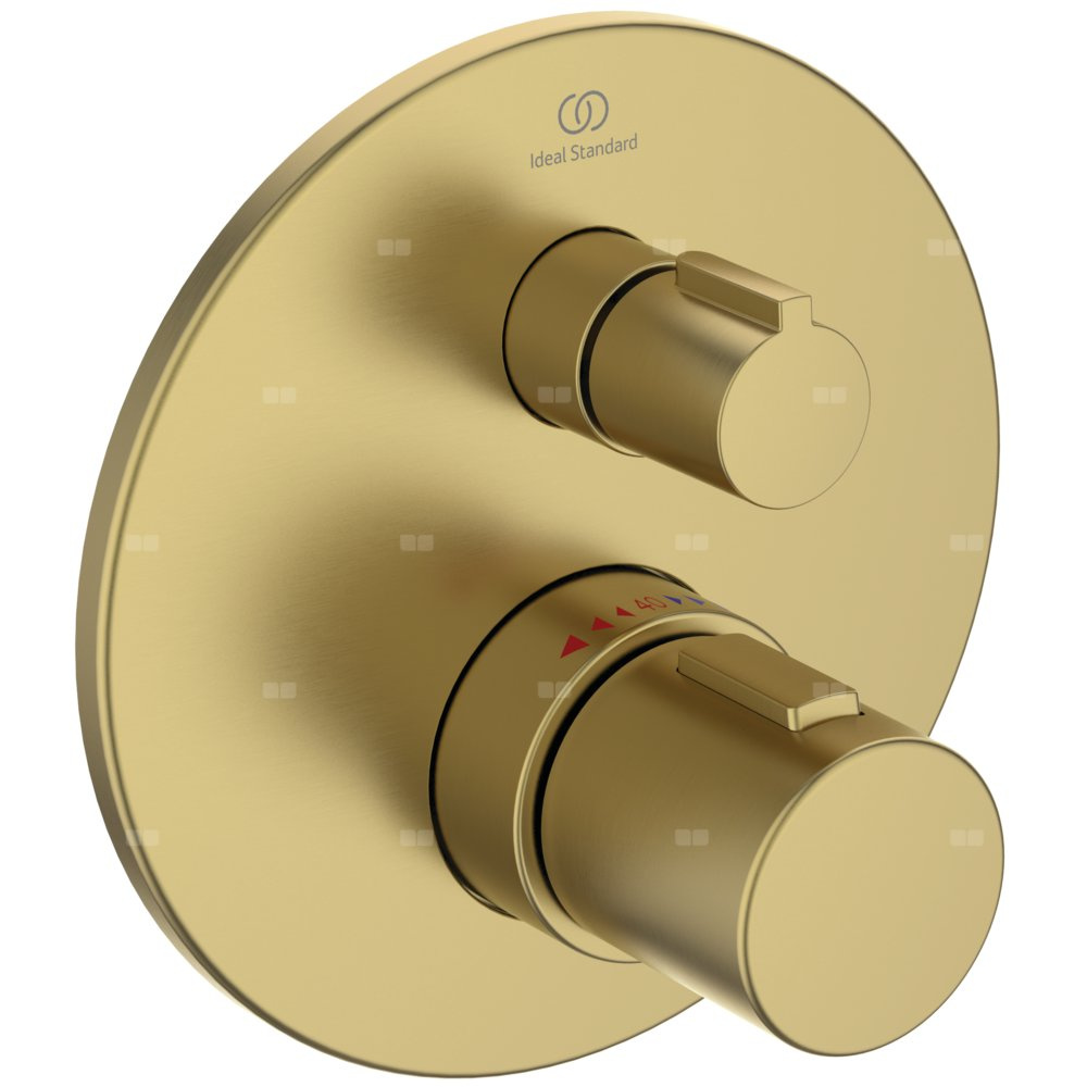 Zestaw montażowy baterii termostatycznej natryskowej podtynkowej (część zewnętrzna). Z głowicą termostatycznną IS (nowa technologia). Ceramiczny zawór talerzowy włącz/wyłącz 90° i przyłączem gwint 3/4''. Bez zintegrowanego przełącznika. Bez akcesoriów w komplecie. Niezbędne wyposażenie: zestaw montażowy A1000NU (część wewnętrzna).