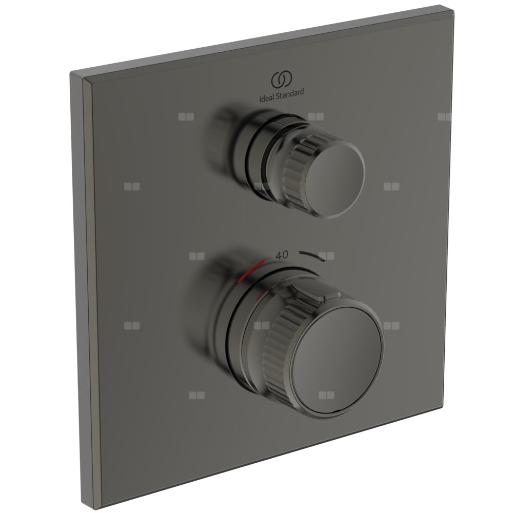 Zestaw montażowy podtynkowej baterii termostatycznej natryskowej Ceratherm Navigo. Bateria z pojedynczym przyciskiem. Głowica FirmaFlow Therm z precyzyjną kontrolą temperatury. Uchwyt z ogranicznikiem temperatury do 40°C. Włączanie/wyłączanie odbywa się za pomocą wciskania przycisku a regulacja przepływu za pomocą jego obracania. Smukła, kwadratowa, metalowa rozeta. Uszczelniony szyld pod rozetę izolujący wodę od ściany. Do skompletowania z zestawem A1000NU (część wewnętrzna).