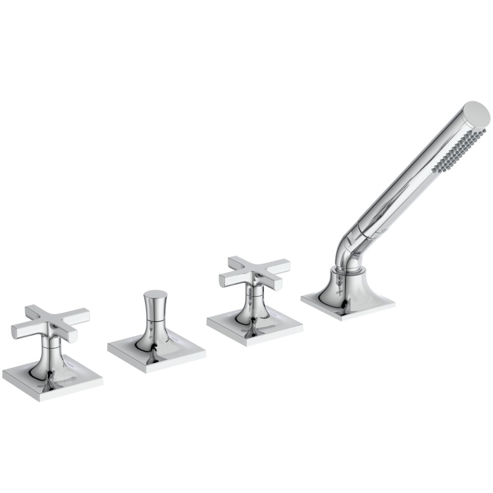 Bateria natryskowo-wannowa 4-otworowa, uchwyty krzyżowe.