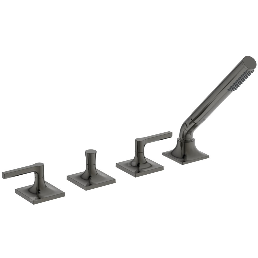Bateria natryskowo-wannowa 4-otworowa, uchwyty dźwigniowe.