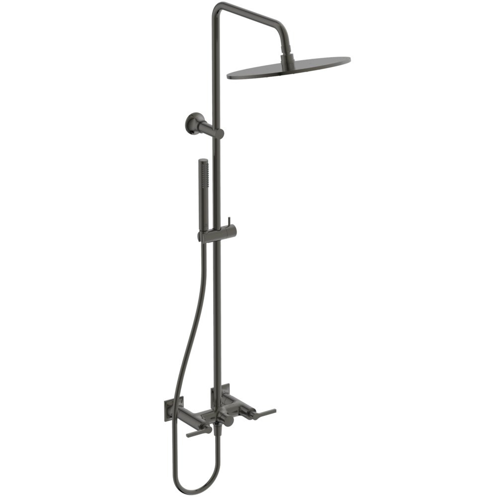 Zestaw montażowy systemu natryskowego Dual Control z uchwytami dźwigniowymi.