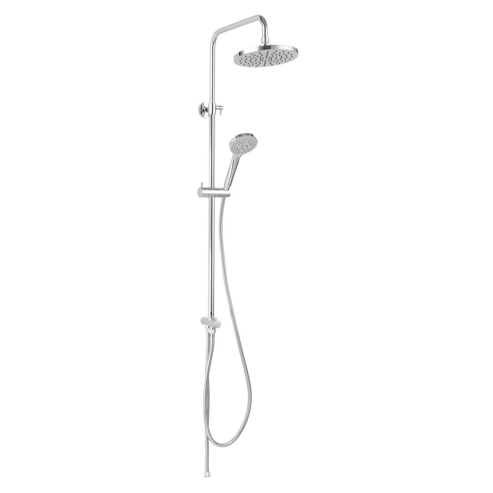 Zestaw natryskowy przesuwny z deszczownią WIZARD to funkcjonalny zestaw prysznicowy, który z łatwością zamontujesz dzięki opcji regulowania wysokości mocowania do ściany, a przegub kulowy w głowicy talerzowej pozwoli na komfortową kapiel m.in. poprzez regulację kąta ustawienia głowicy. Okrągła rączka prysznicowa posiada 3 funkcje strumienia (deszcz, masaż, mieszany). Głowica talerzowa oraz rączka natrysku zostały wyposażone w System Easy Clean, który ułatwia usuwanie kamienia wapiennego z powierzchni dys
